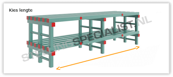 Voor de standaardconfiguraties rekent u op een levertijd van één à twee weken. Voor kunststof rekken die u laat samenstellen, is de levertijd twee tot drie weken. Vanzelfsprekend houden we u op de hoogte van de levering.